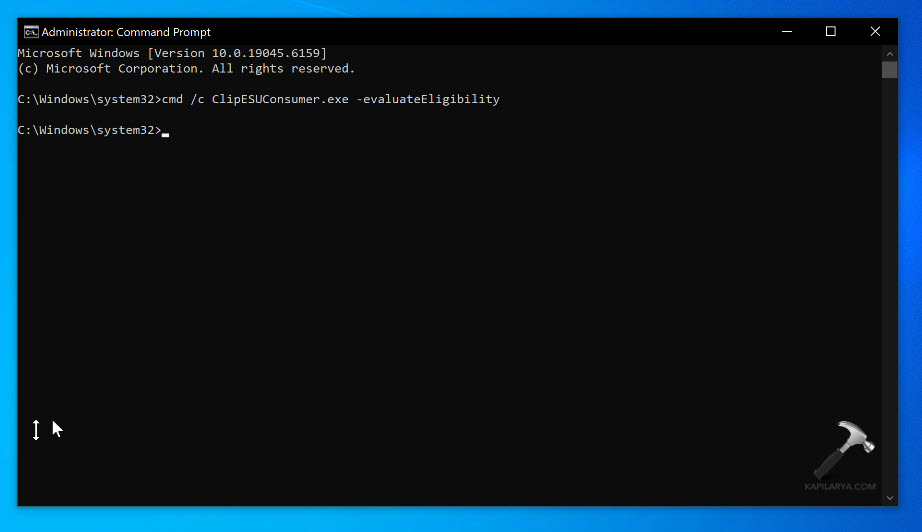 cmd /c ClipESUConsumer.exe -evaluateEligibility
