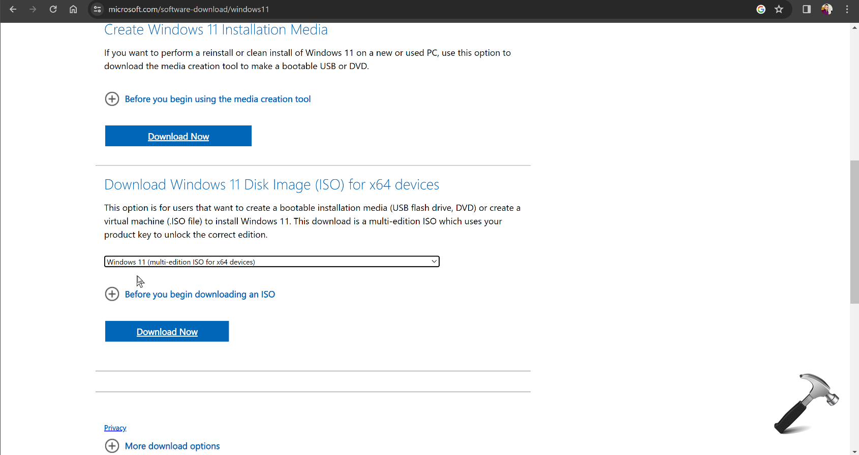 2. Selecione o arquivo ISO de múltiplas edições do Windows 11 e baixe-o com o idioma atualmente instalado em seu sistema.