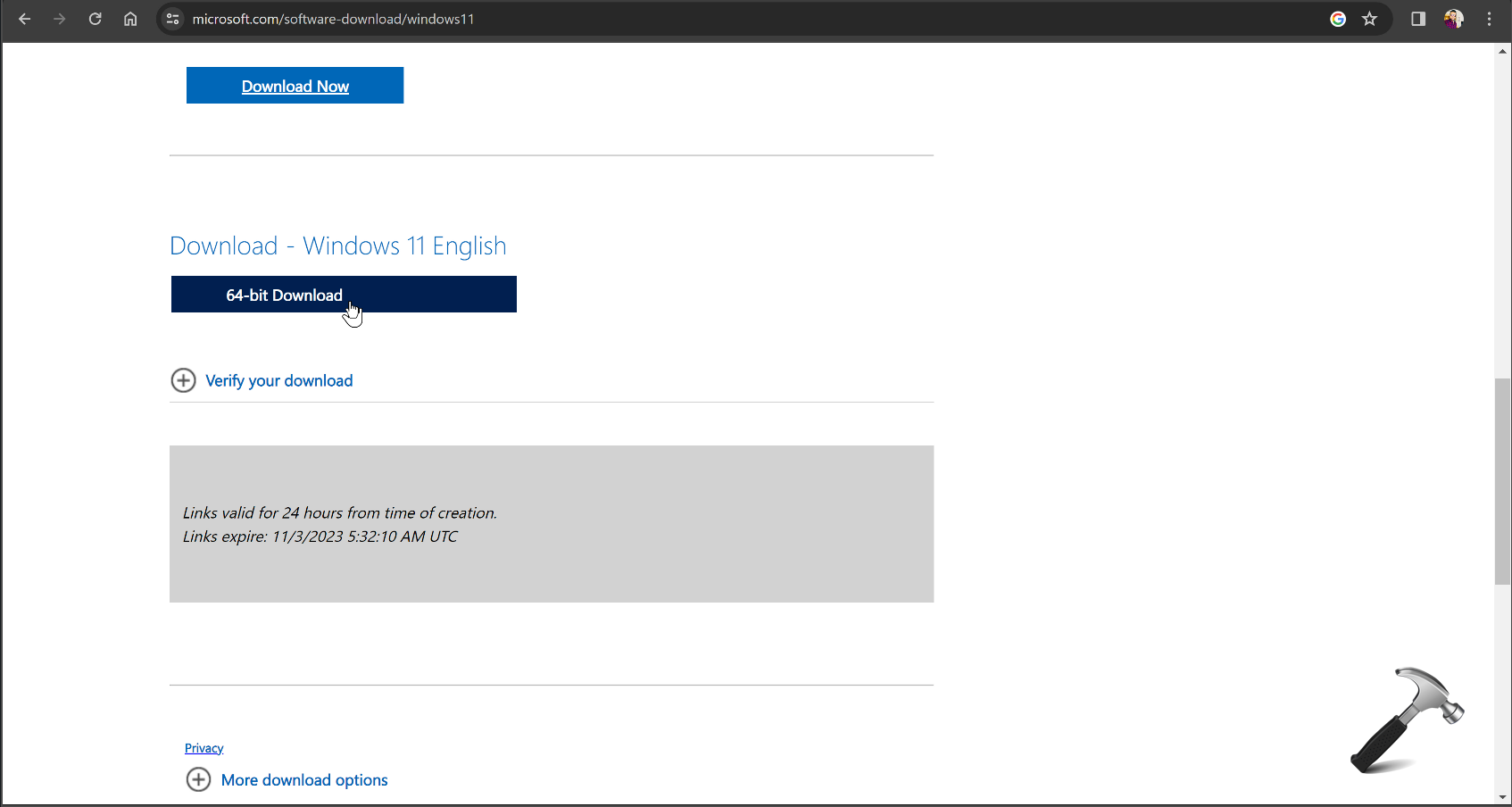 3. O link do arquivo ISO será gerado, clique nele para baixar o arquivo ISO do Windows 11 2023.