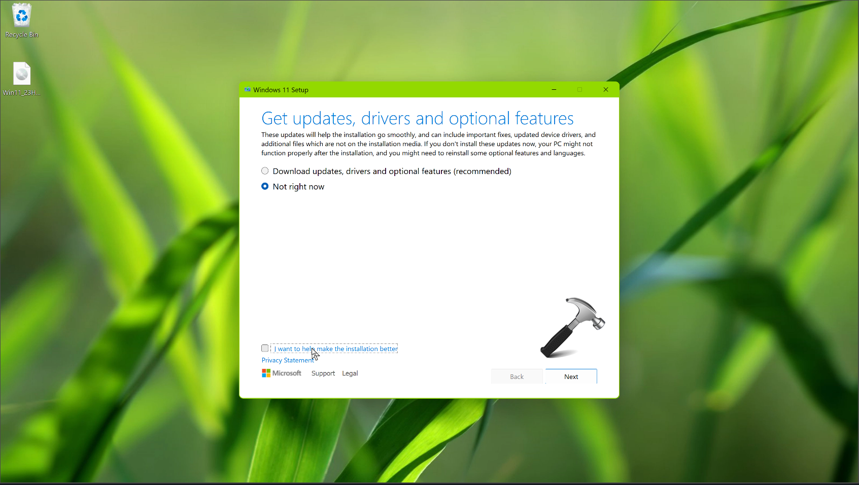 6. Finalmente, você deve estar na tela Pronto para instalar. Clique no botão Instalar para concluir a instalação da atualização do Windows 11 2023.