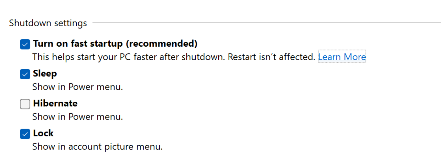 Agora desmarqueAtive a inicialização rápida (recomendado).