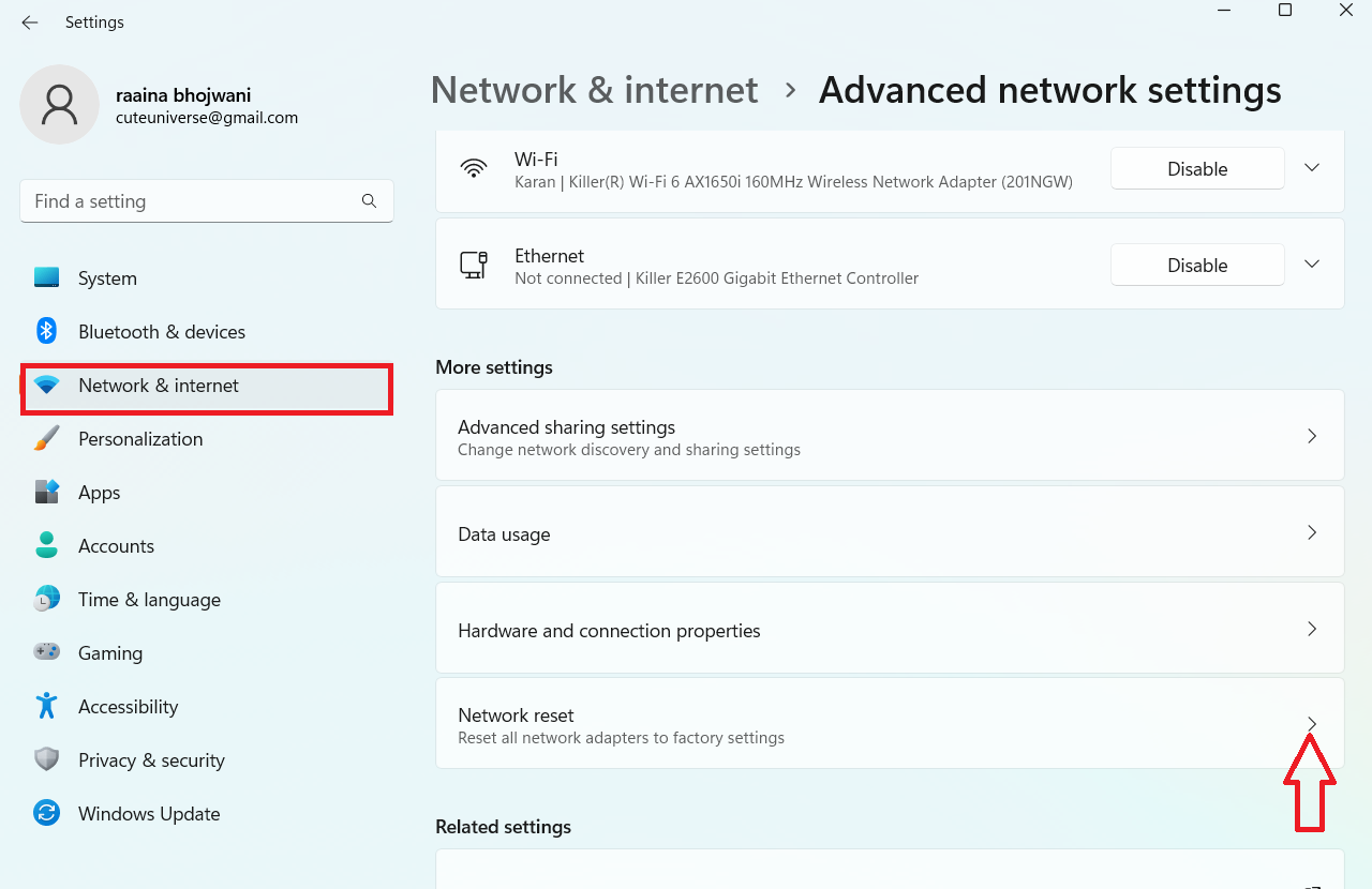 AbrirConfiguraçõese clique emRede e Internet > Configurações avançadas de rede.