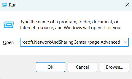 control.exe /name Microsoft.NetworkAndSharingCenter /page Advanced
