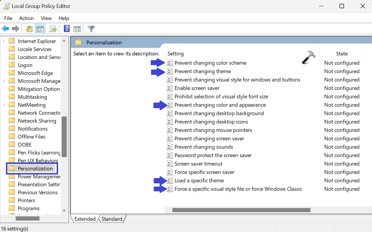 User ConfigurationAdministrative TemplatesPersonalization