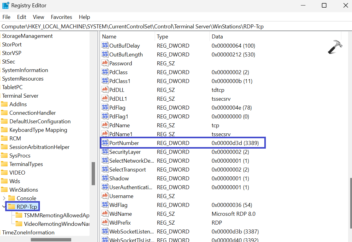 ComputerHKEY_LOCAL_MACHINESYSTEMCurrentControlSetControlTerminal ServerWinStationsRDP-Tcp