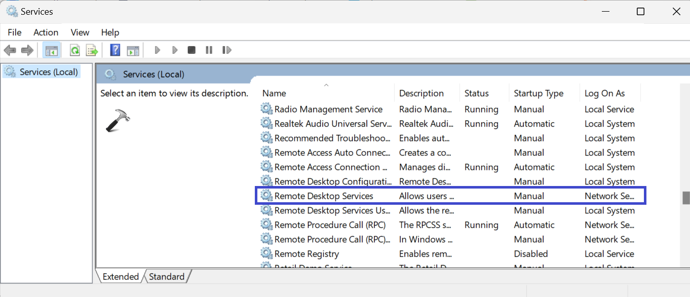 Para que o Serviço de Área de Trabalho Remota funcione corretamente, os Serviços RDP devem estar em execução em segundo plano. Siga as etapas: