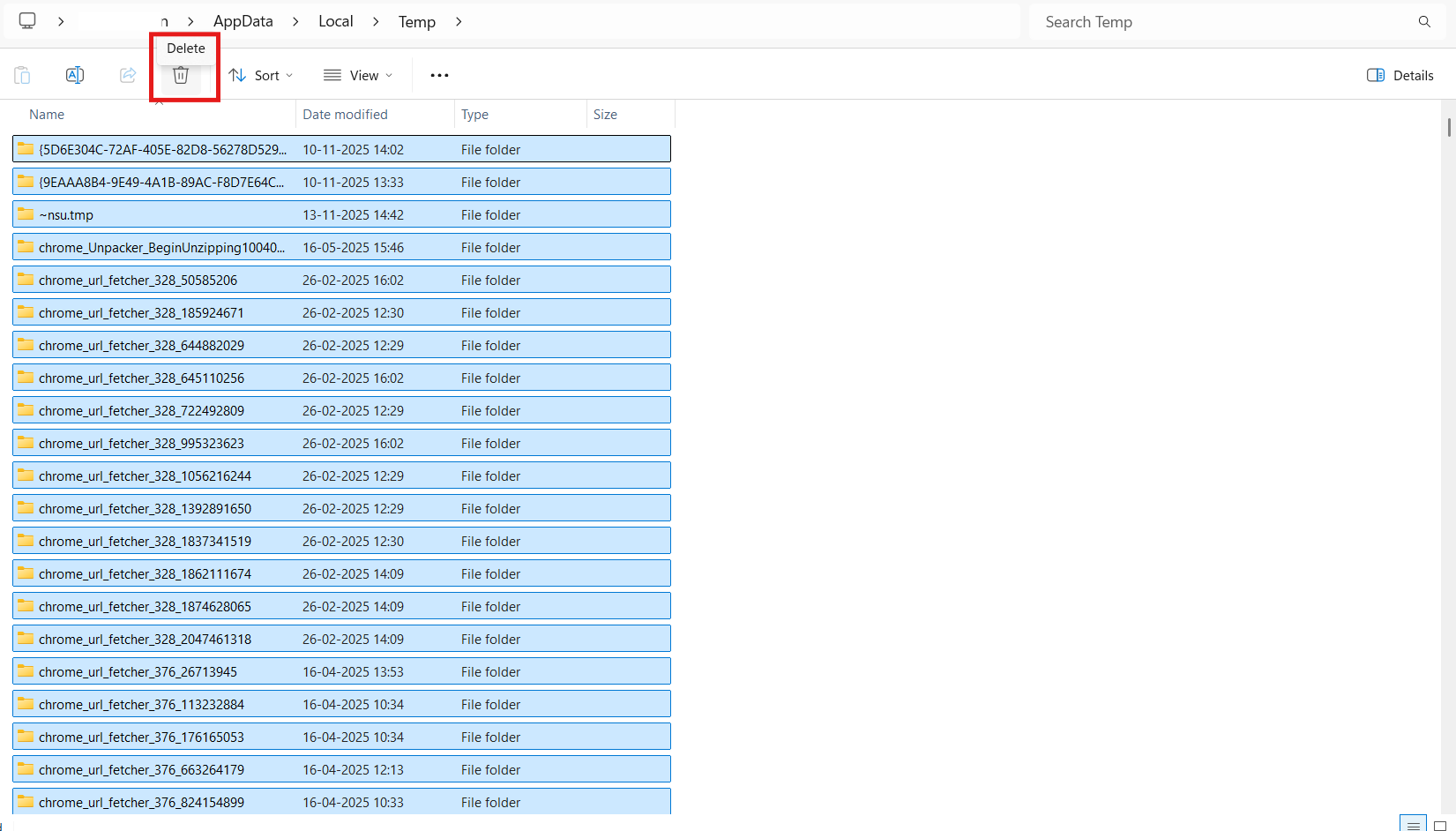 1. Pressione Windows e R, digite%temp%e pressione Enter.