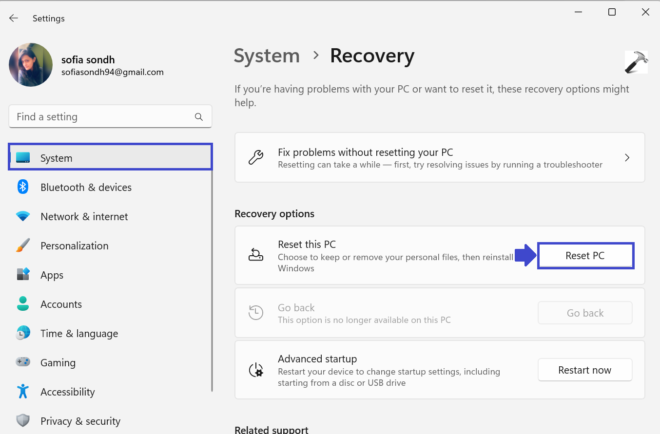 Se o problema persistir, reinicie o seu PC, mas certifique-se de manter seus arquivos. Siga as etapas abaixo para reiniciar seu PC: