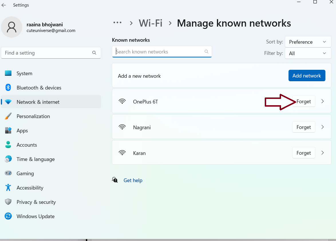 3. Clique com o botão direito na rede que deseja remover e escolha “Esquecer”.