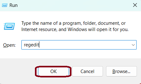 1. Pressione Windows + R para abrir Executar e digite “regedit”. Clique em “OK”.