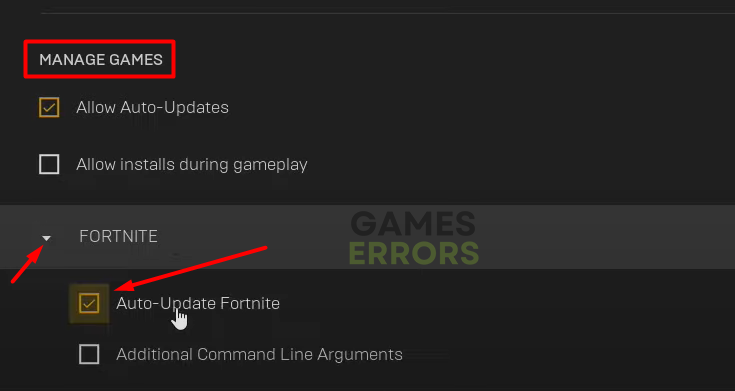- Encontre o subpainelFortnitee clique nele para expandi-lo.