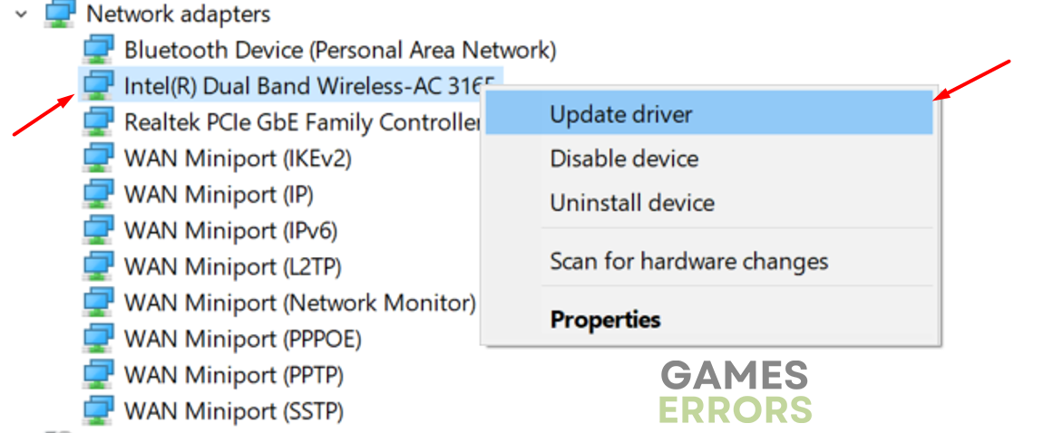 - Clique com o botão direito em seudispositivo de redena lista de todos os dispositivos e selecioneAtualizar driver.