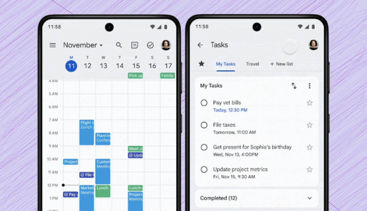 A atualização adiciona um ícone do Google Tasks ao aplicativo Agenda. O ícone fica no canto superior direito entre a foto do perfil do usuário e o ícone da visualização Hoje. Tocar no ícone Tarefas abre uma página “Tarefas”, onde as tarefas e listas de tarefas dos usuários aparecem em uma única visualização em tela inteira.