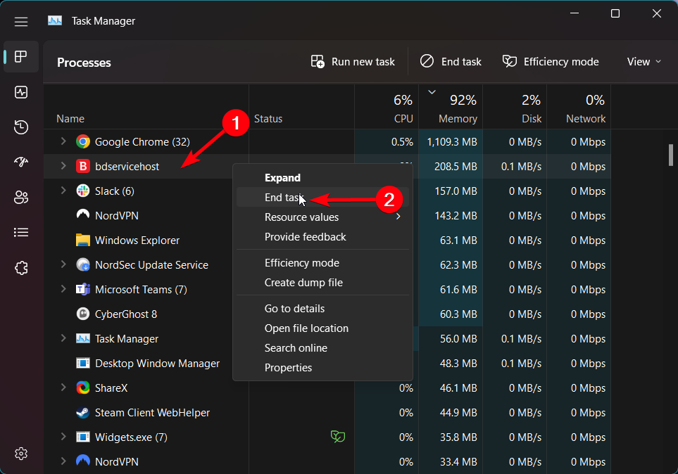 - Clique com o botão direito no aplicativo e selecioneFinalizar tarefa.