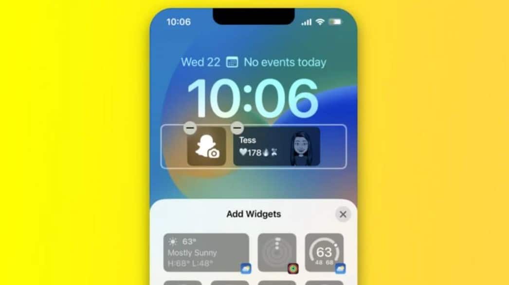 O Snapchat também lançou widgets para a tela de bloqueio do iOS 16, permitindo aos usuários acessar rapidamente uma conversa com seus melhores amigos e, ao mesmo tempo, exibir sua sequência atual com eles. Há também um widget que permite aos usuários acessar rapidamente o aplicativo para tirar uma foto.