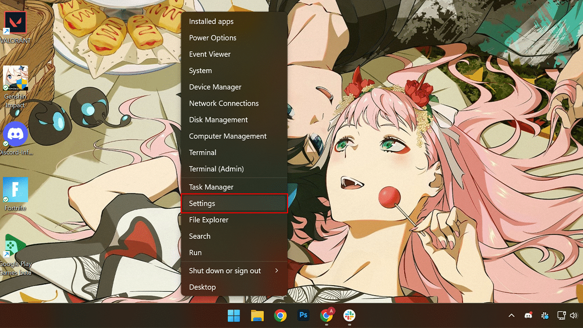 - Clique com o botão direito emComeçar> clique emConfigurações.