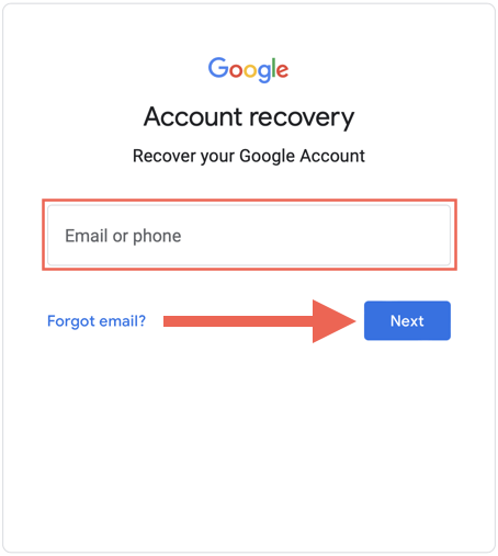 - Visite oPágina de recuperação de Conta do Google, insira seu endereço de e-mail ou número de telefone e selecionePróximo. Ou selecioneEsqueceu sua senha?ao tentar fazer login em sua conta normalmente.