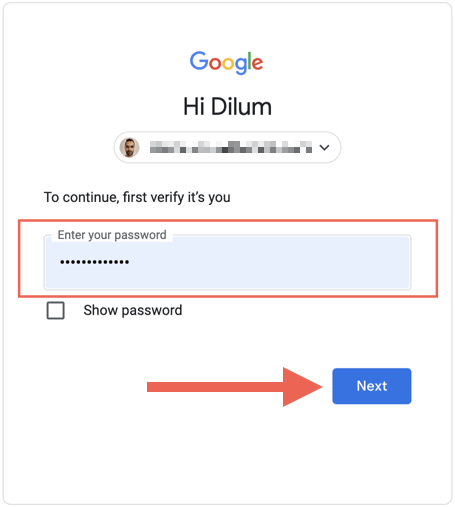 - Digite sua senha atual para verificar sua identidade e selecionePróximo.