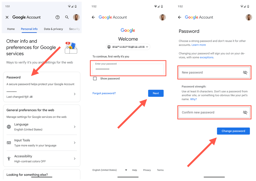 Alterar a senha da sua Conta do Google é uma etapa importante para impedir o acesso não autorizado aos seus dados. Se você acredita que sua conta foi comprometida, você deverá alterar sua senha imediatamente. Atualizações regulares de senha também aumentam a segurança da conta.