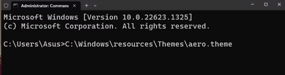 Observação:Qualquer outro nome de tema pode ser usado no lugar de “aero.theme” no comando. “Dark.theme” e “Spotlight.theme” são alguns exemplos.