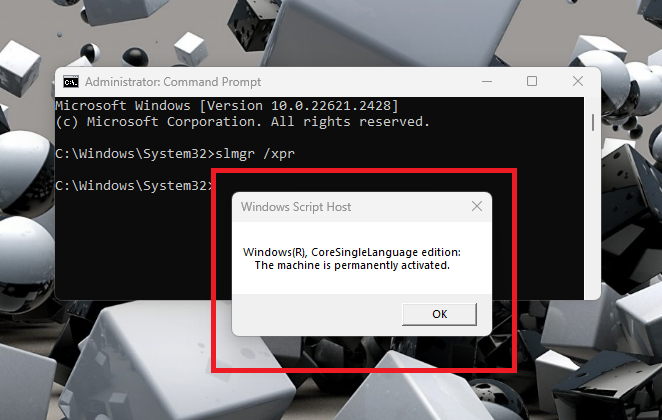 Além dos métodos mencionados acima, outra forma de verificar se o Windows 11 é original ou não é usando o utilitário Prompt de Comando. Existe um comando CMD que fornece informações sobre o status da versão do Windows em sua máquina.