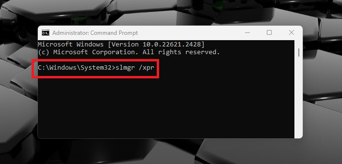 2.Agora,tipoo“slmgr /xpr”comando na janela CMD ebaterodigitarbotão.