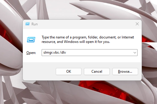 4.Obterdetalhes adicionaisda versão do sistema operacional, digite o“slmgr.vbs/dlv”comando na janela do utilitário Executar.