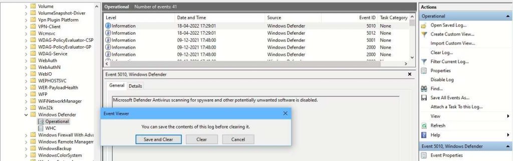 O software Event Viewer, uma ferramenta útil para revisar os logs de eventos do seu dispositivo, também permite remover manualmente o Histórico de Proteção do Defender. É assim: