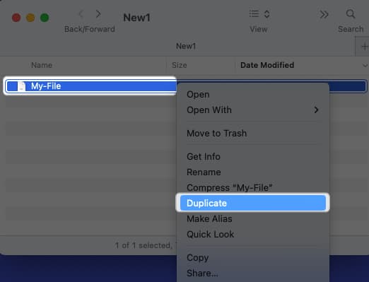 Para fazer uma cópia de um arquivo ou pasta no mesmo local, clique com o botão direito ou segureControlare clique e escolhaDuplicado. Isso copia o arquivo ou pasta e coloca “cópia” no nome.