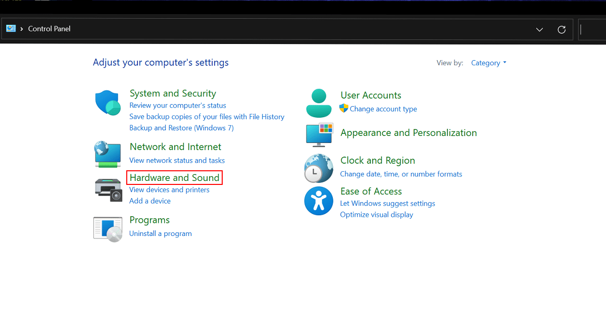 - AbrirComeçar> procure porPainel de controle> clique no resultado superior para abrir.