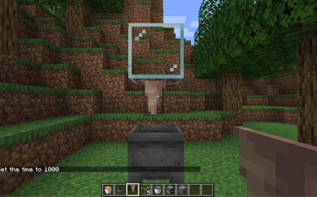 - Adicione um bloco à prova de fogo dois blocos acima do caldeirão.