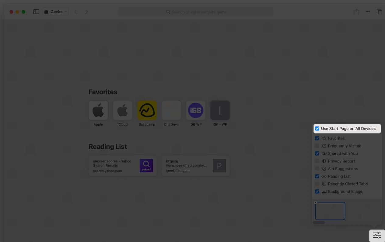 Se você estiver usando o ecossistema Apple, ter as mesmas configurações da página inicial em todos os dispositivos pode ser útil para acessar todos os seus favoritos e listas de leitura, independentemente do dispositivo que você estiver usando no momento.