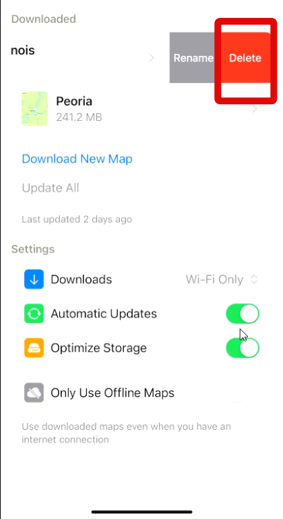 4.Agora toqueExcluirpara excluir o mapa baixado.