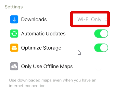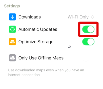 8.Toque e ative o botão de alternância paraAtualizações Automáticaspara atualizar automaticamente seus mapas off-line em segundo plano.