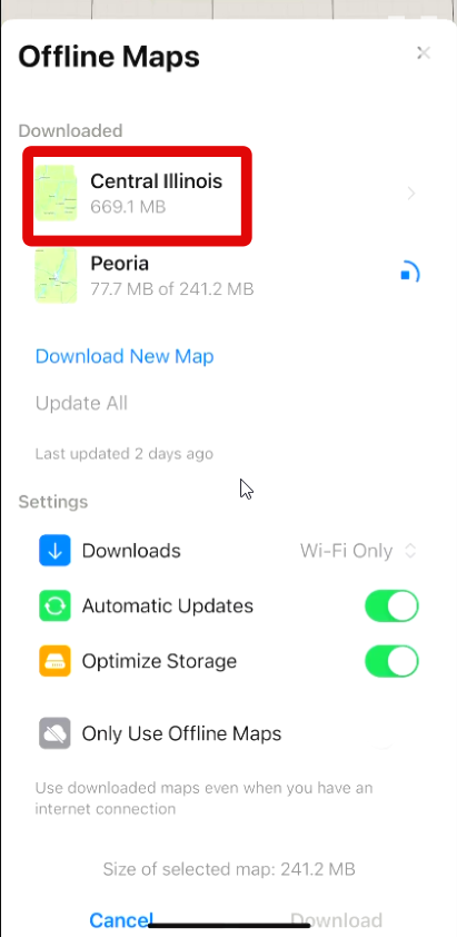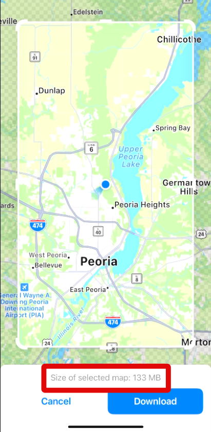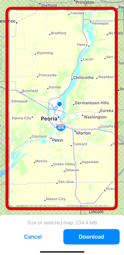 17.O mapa selecionado agora será baixado no seu iPhone. Isso pode levar algum tempo, dependendo da velocidade da rede e da largura de banda disponível.