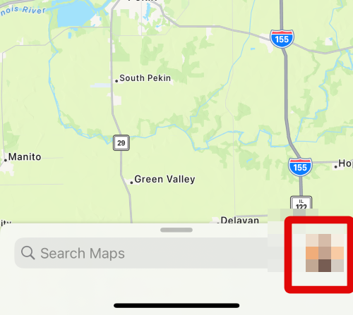 1.Abra o Apple Maps no seu iPhone e toque na imagem do seu perfil ao lado da barra de pesquisa na parte inferior da tela.