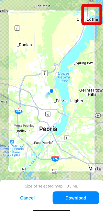 13.Toque e arraste os cantos para selecionar a área do mapa que deseja baixar para uso offline.