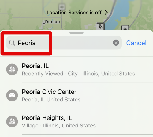 11.Você também pode tocar na barra de pesquisa e procurar um novo local, se desejar, dependendo de suas necessidades.