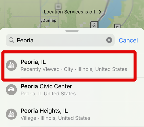 3.Toque e selecione o local pesquisado nos resultados da pesquisa.
