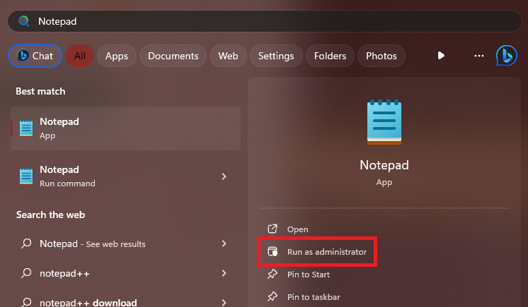 A primeira e mais direta maneira de editar o arquivo hosts é usando o Bloco de Notas. A maioria dos usuários do Windows já está familiarizada com o Bloco de Notas, portanto, usá-lo para fazer alterações no arquivo hosts não será tão difícil. Veja como você pode editar o arquivo hosts usando o aplicativo Bloco de Notas no Windows 11: