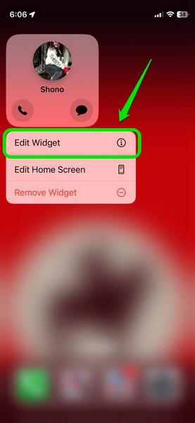 5.Depois de adicionar o widget de contato 1×1 na tela inicial do iPhone, você podetoque novamente enquanto estiver no modo de manobrapara abrir sua página de personalização.