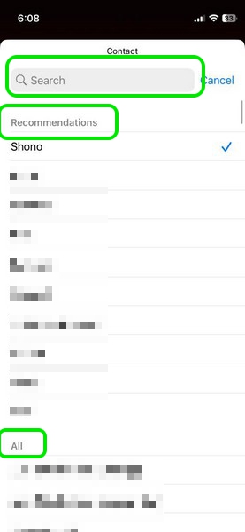 4.Agora, toque nonome do contato ao lado do campo Contatopara abrir seu diretório de contatos.