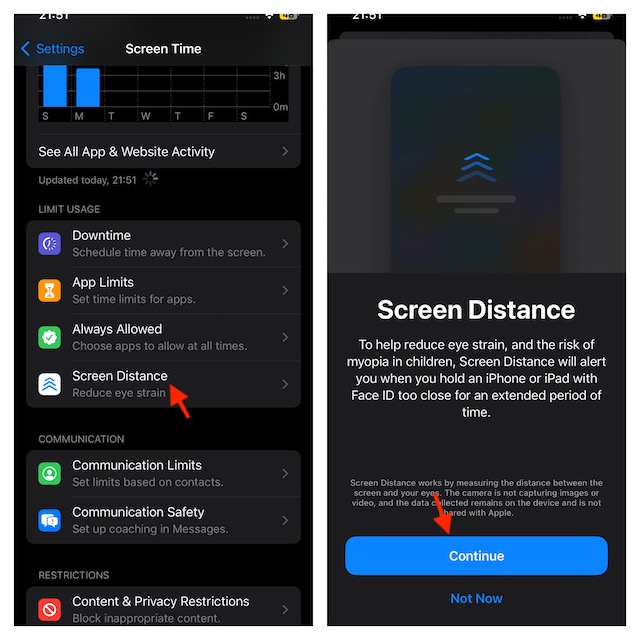 - Na seção “Limitar uso”, toque em“Distância da tela“.