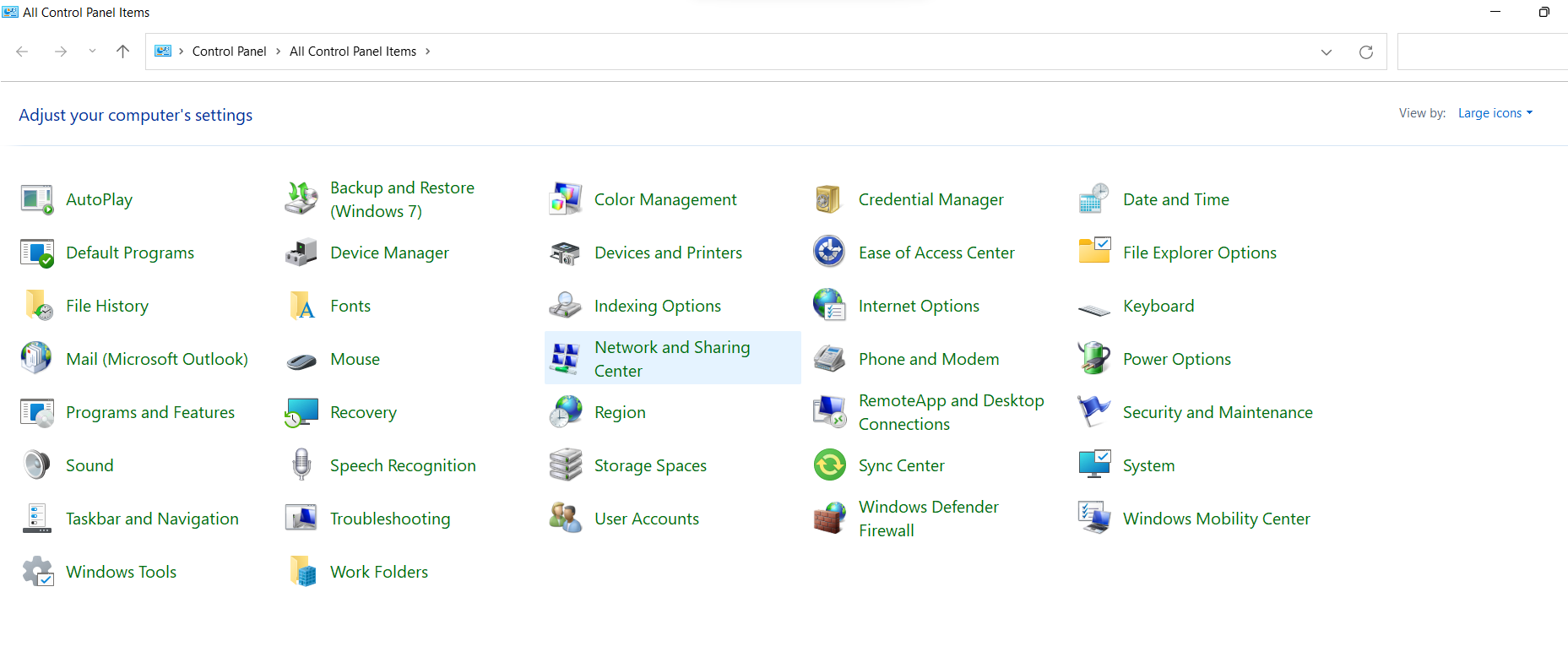 - Aqui, vá paraCentro de Rede e Compartilhamento.