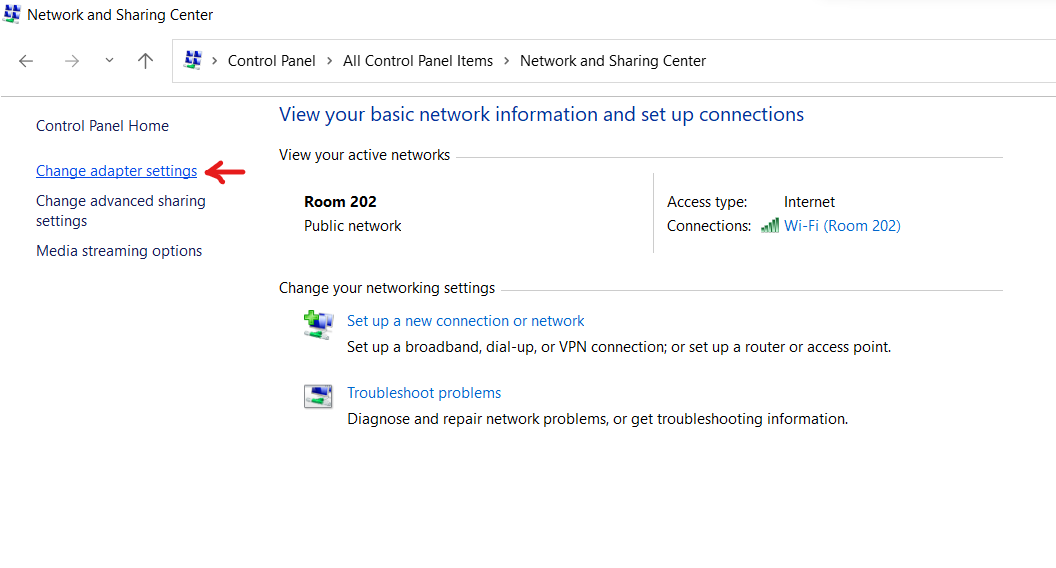- Agora, clique emAlterar configurações do adaptadorno lado esquerdo da tela.