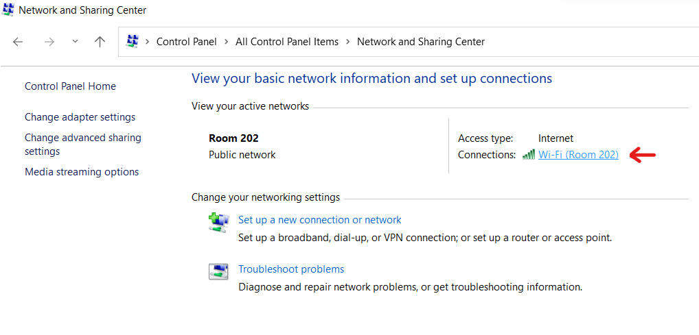 - Nesta tela, clique no link de conexão de rede que você encontrará ao lado da conexão para a qual deseja saber os detalhes do endereço do servidor DNS.