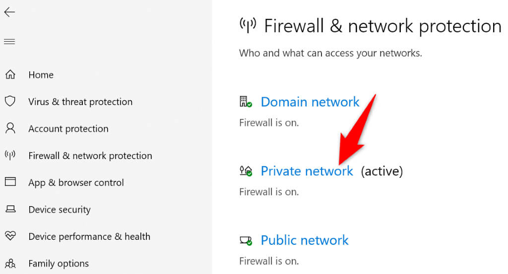 - Desligue oFirewall do Microsoft Defenderalternar.
