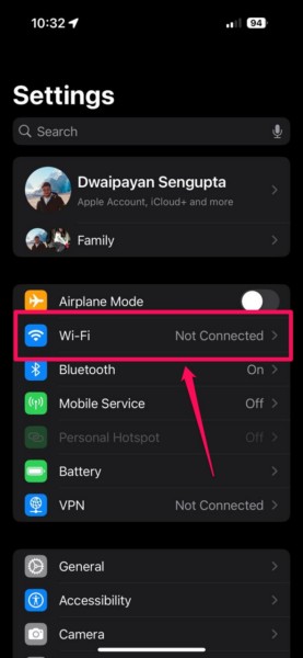 Neste caso, você deve conectar seu iPhone à mesma rede Wi-Fi à qual seu dispositivo receptor AirPlay está conectado. Você pode seguir as etapas abaixo para se conectar à rede Wi-Fi de sua preferência no seu iPhone: