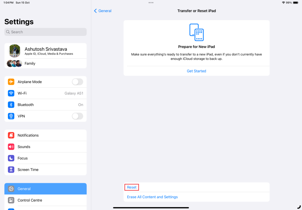 Uma redefinição de fábrica pode corrigir o problema de não conexão do Apple Pencil, redefinindo todas as configurações e software do iPad para o estado padrão. Isso pode ser útil se um bug ou falha de software estiver fazendo com que o Apple Pencil não se conecte. Veja como você pode redefinir um iPad executando iPadOS17: