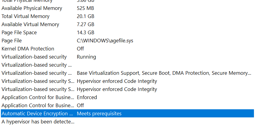 2.EmInformações do sistema, procure oSuporte para criptografia de dispositivositem do lado esquerdo.